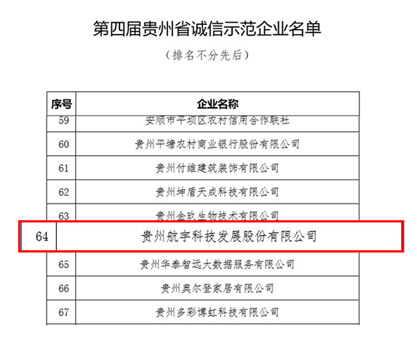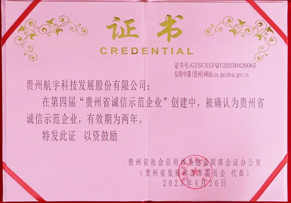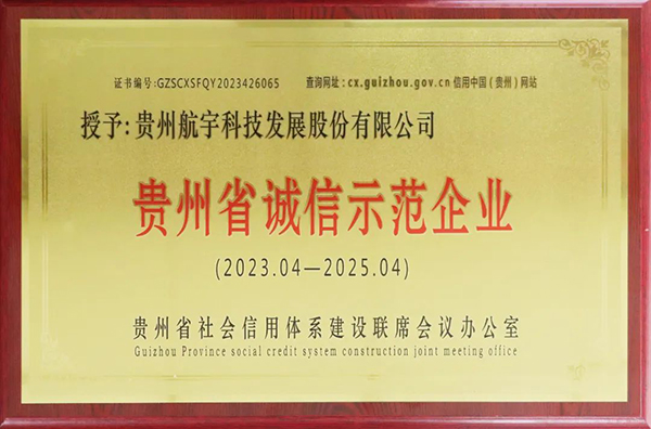 航宇科技獲評第四屆貴州省誠信示范企業(yè)