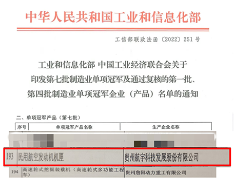 制造業(yè)單項(xiàng)冠軍企業(yè)(產(chǎn)品) 航宇科技再添國字號榮譽(yù)