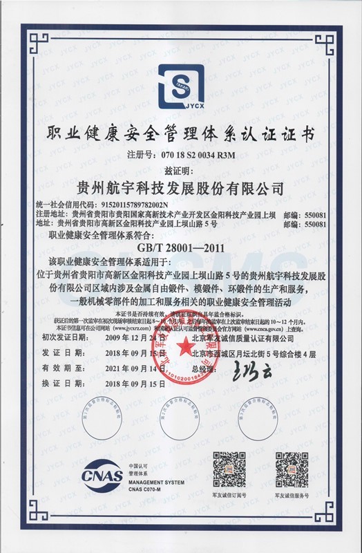 職業(yè)健康安全管理體系認(rèn)證證書