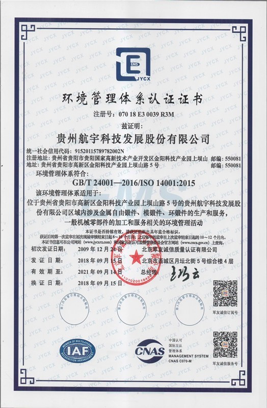 環(huán)境管理體系認(rèn)證證書